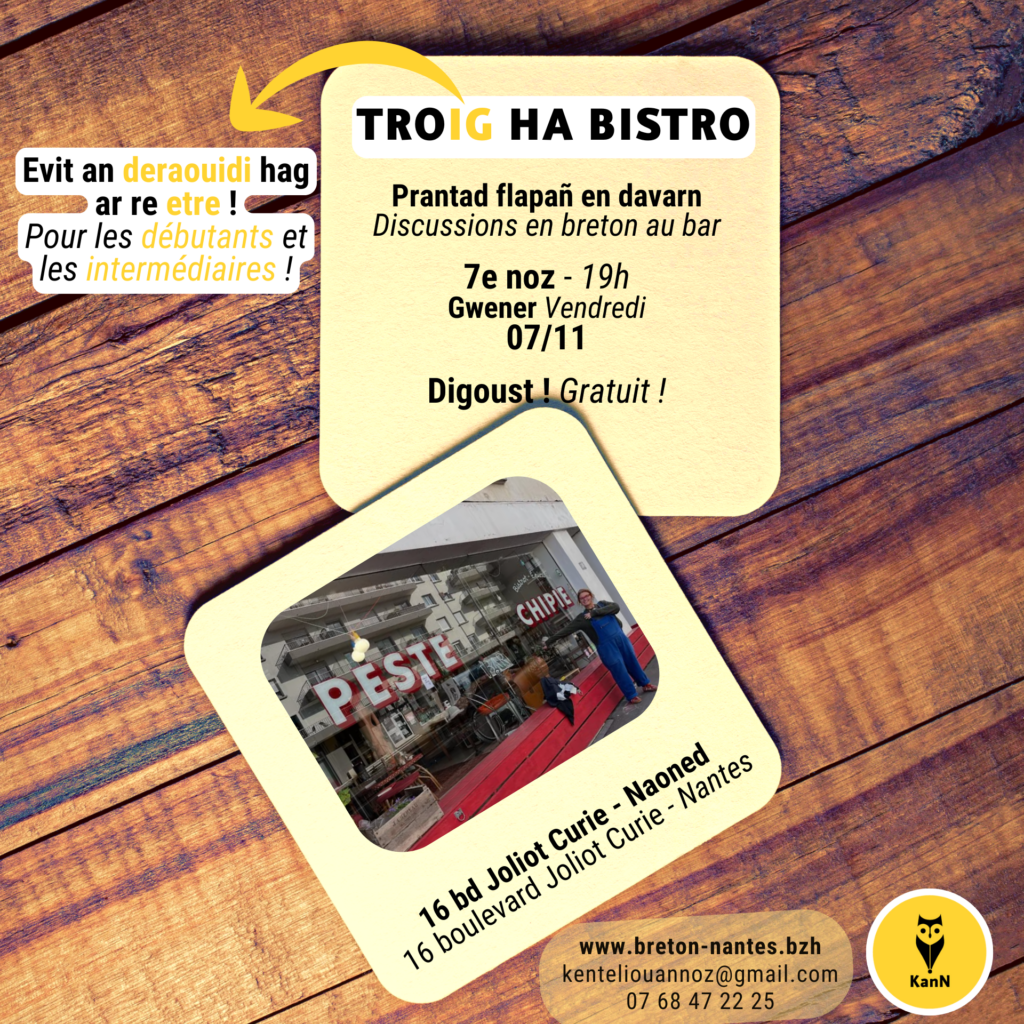 Bienvenue – Donemat Kentelioù an Noz (Cours du soir) propose des cours et des stages de breton sur Nantes et en Loire-Atlantique ainsi que des activités et événements en langue bretonne. Pour nous soutenir, cliquez-ici ACTUALITES ABONNEZ-VOUS A NOTRE NEWSLETTER NOS RESEAUX SOCIAUX Facebook Instagram Youtube Linkedin Twitter