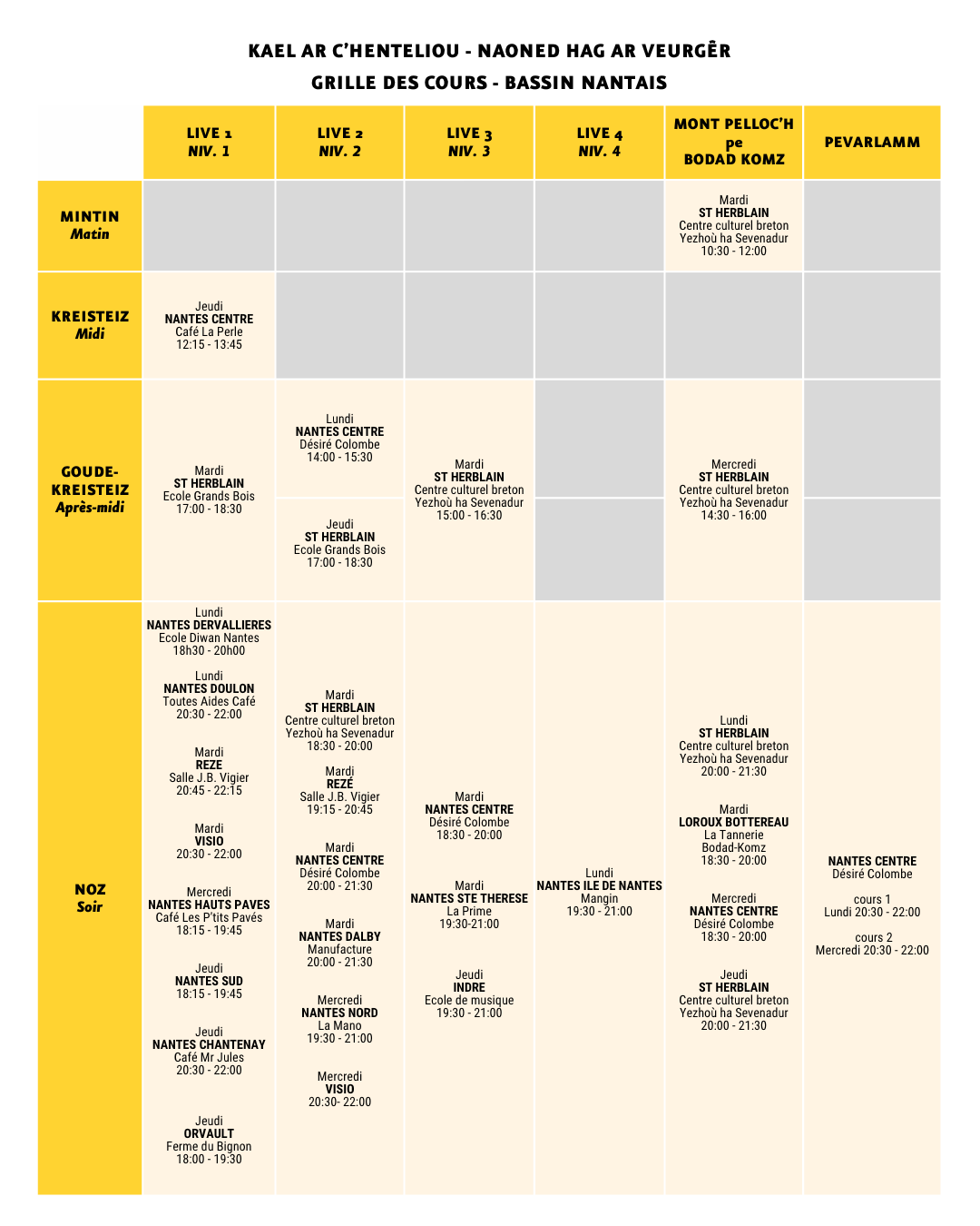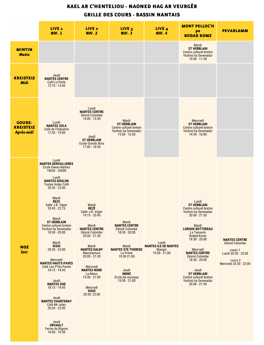 KanN propose des cours de breton pour adultes en Loire-Atlantique. Le cursus classique de cours du soir est composé de 5 niveaux. A la fin de ce cursus, vous aurez toutes les compétences pour comprendre et être compris !